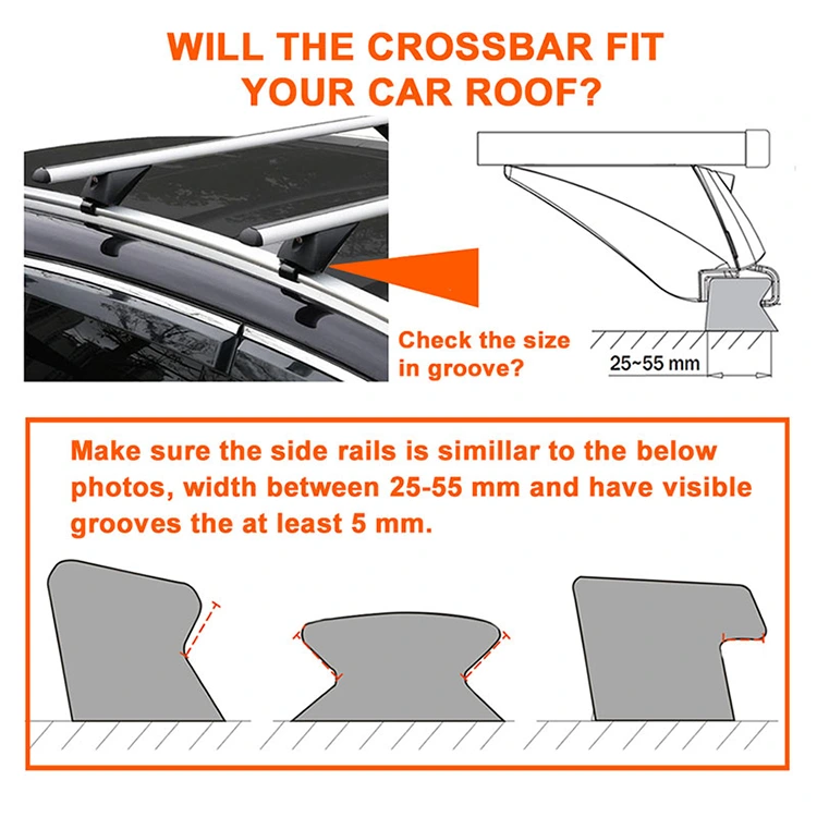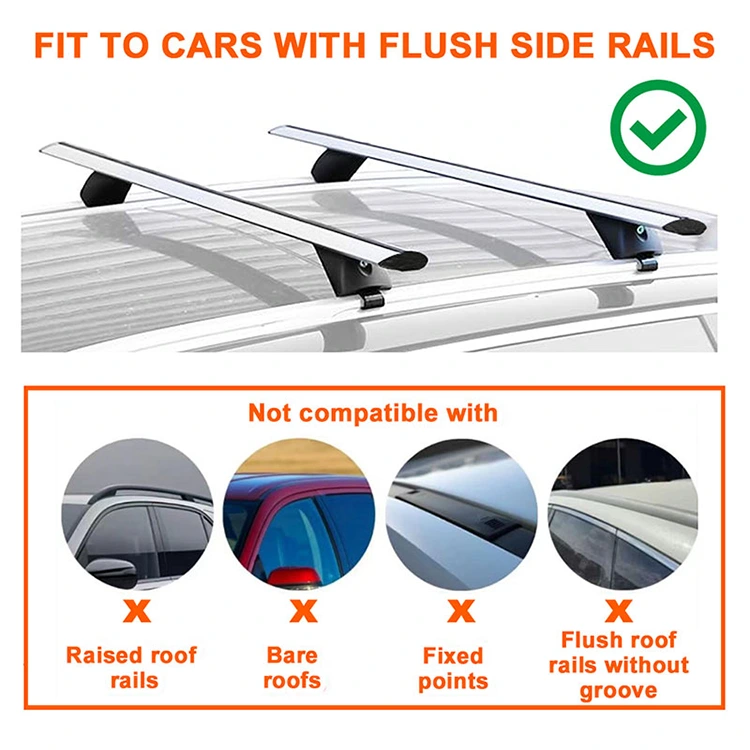 इंस्टालेशन अनुकूलता: केवल फ्लश साइड रेल्स पर फिट बैठता है (आरेख देखें), ऊंची छतों पर इंस्टालेशन जोखिमों को रोकता है।