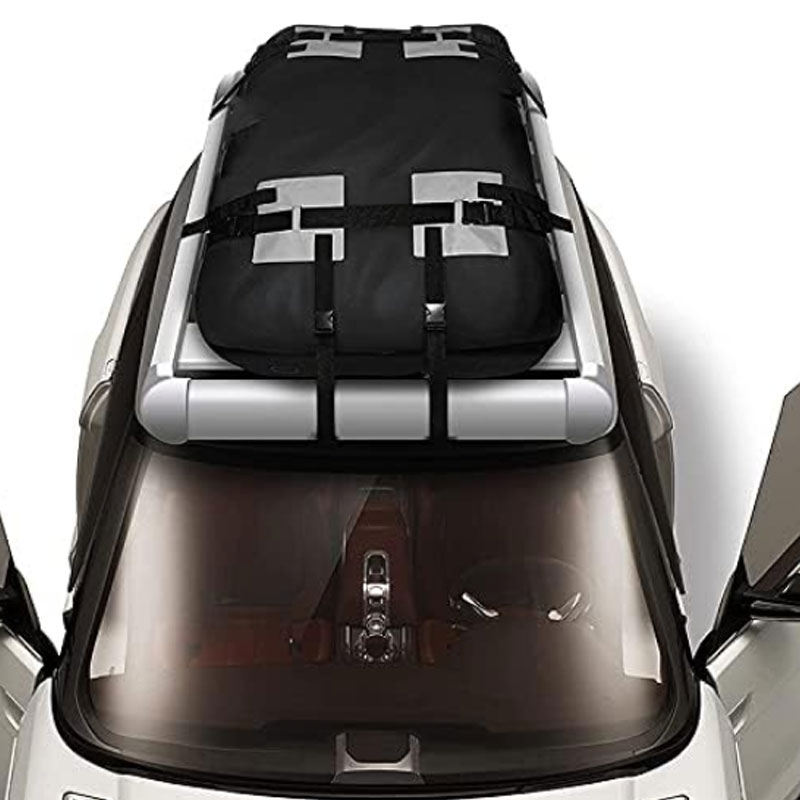 यूनिवर्सल फिट सिस्टम: एडजस्टेबल पट्टियाँ और एंटी-स्लिप मैट बैग को किसी भी वाहन की छत पर सुरक्षित रखते हैं, यहां तक कि बिना रेलिंग के भी। स्थापना के लिए किसी उपकरण की आवश्यकता नहीं है.